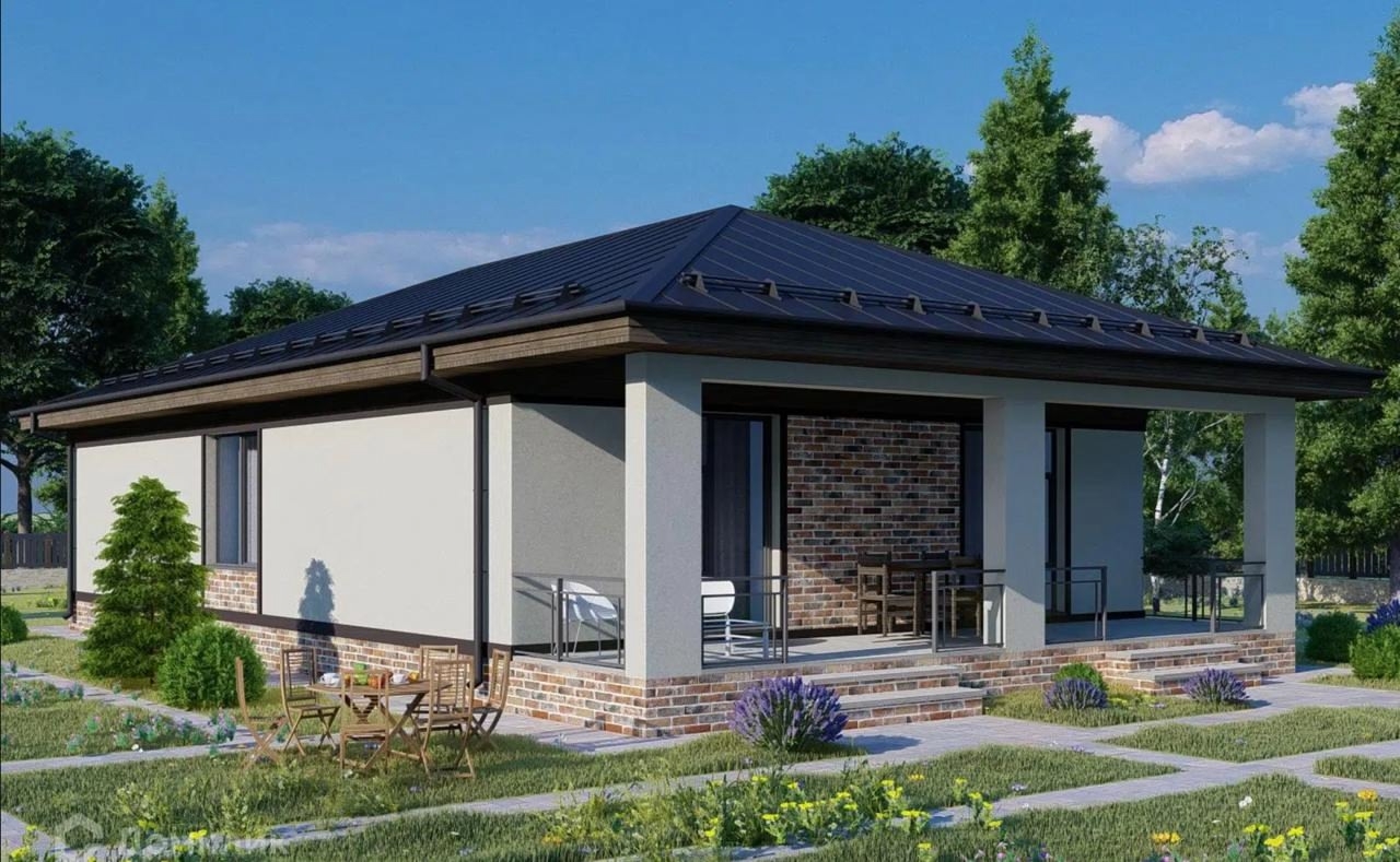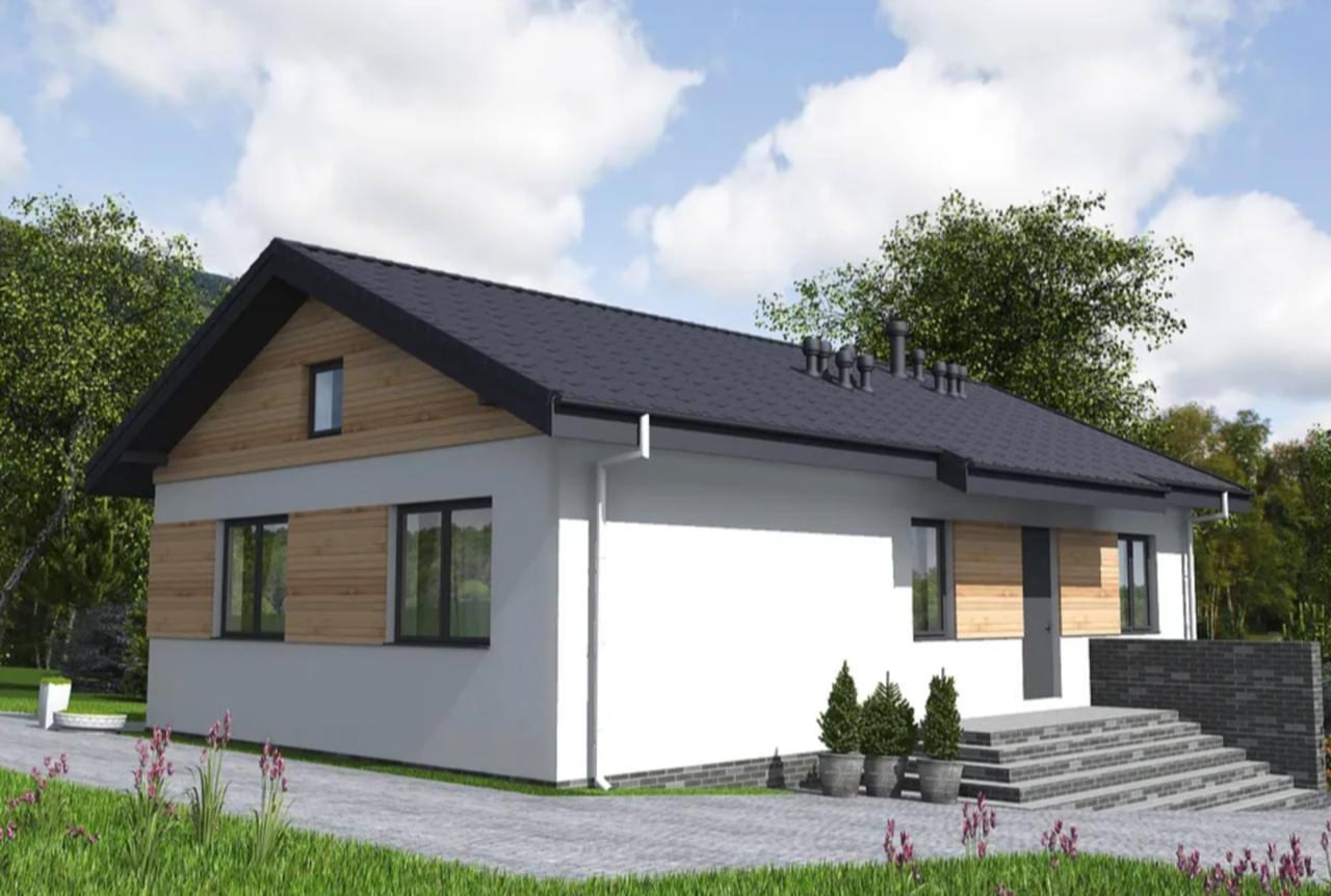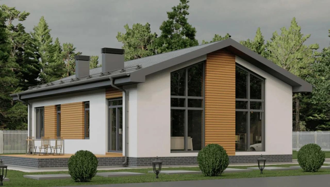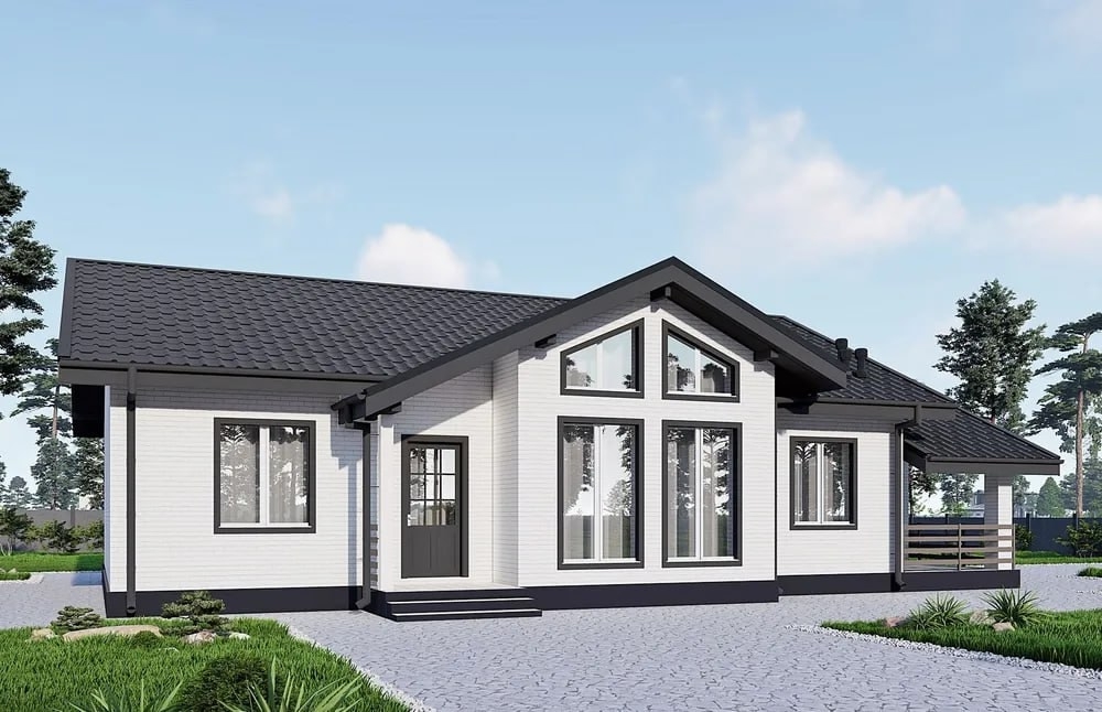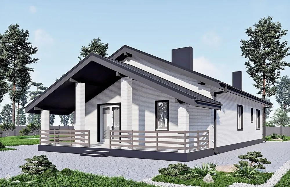 Современный одноэтажный дом, созданный для комфортной жизни семьи из 3-4 человек. Этот проект — разумная альтернатива городской квартире, где у каждого будет свое пространство.
