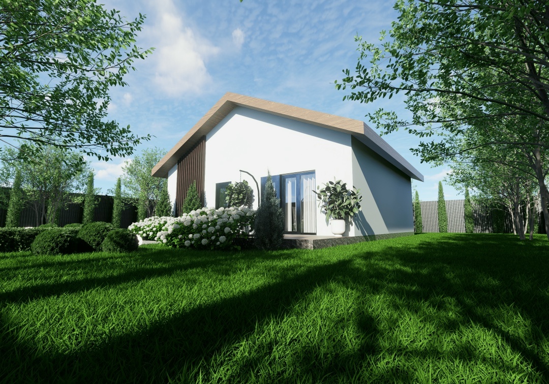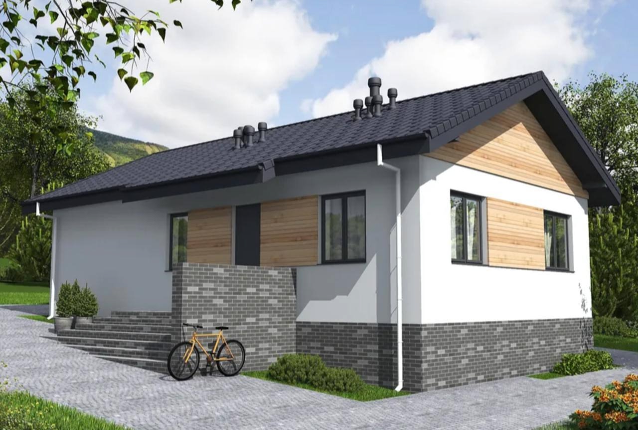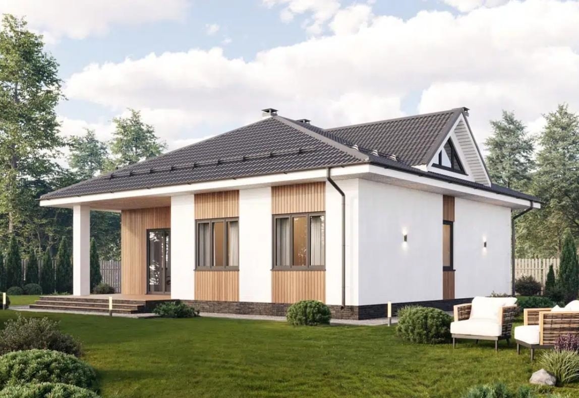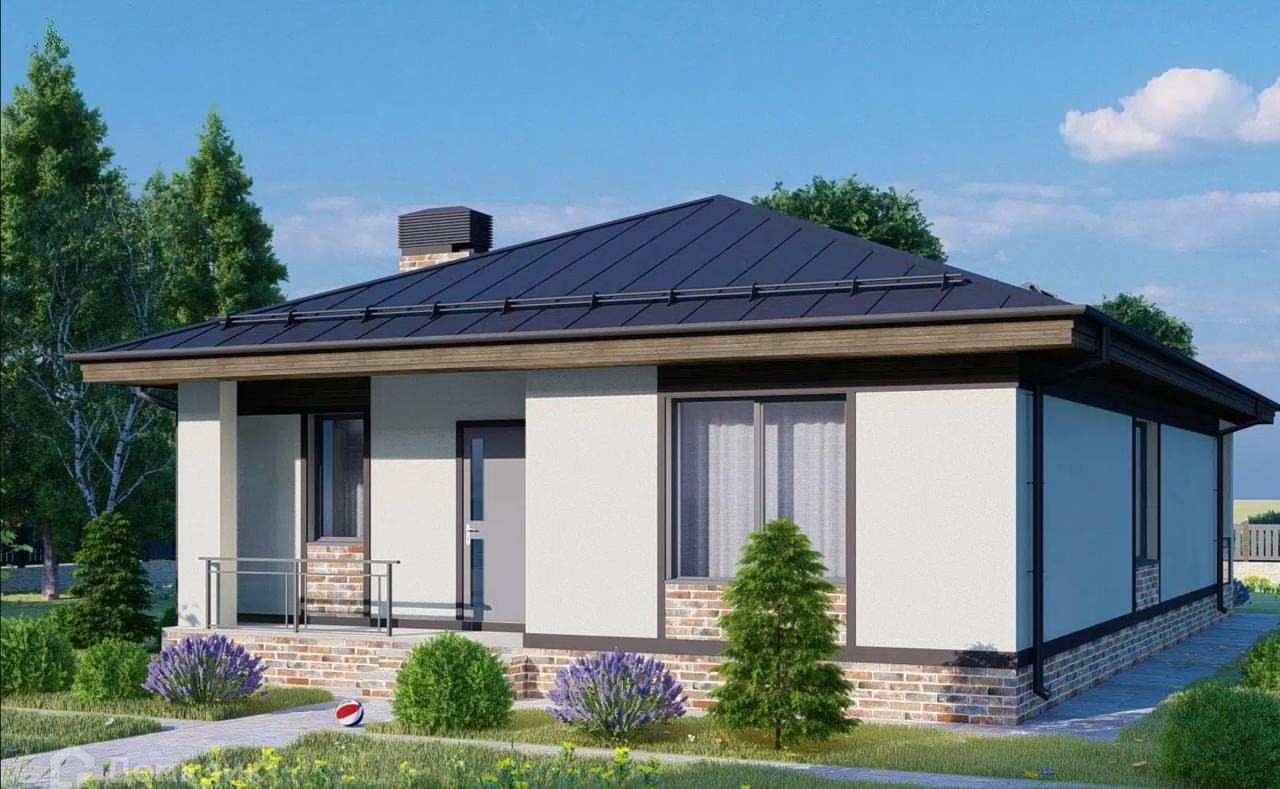 Современный одноэтажный дом, созданный для комфортной жизни семьи из 3-4 человек. Этот проект — разумная альтернатива городской квартире, где у каждого будет свое пространство.