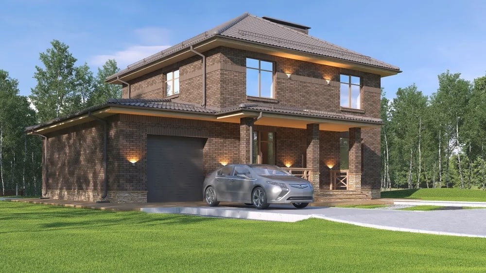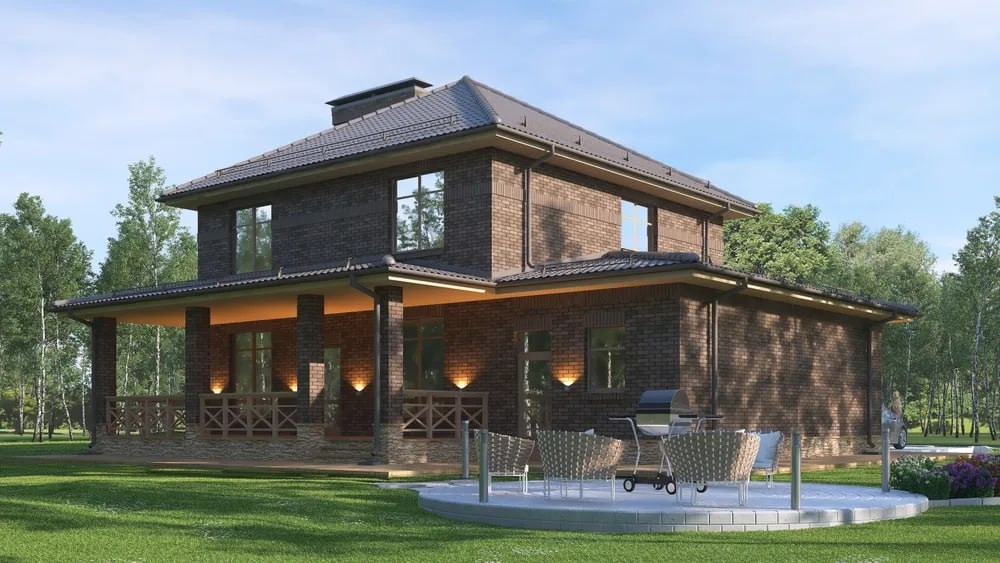 Капитальный фасад: Облицовочный кирпич — это не только красиво, но и максимально долговечно. Такой дом не потребует ремонта фасада десятилетиями и будет только расти в цене.