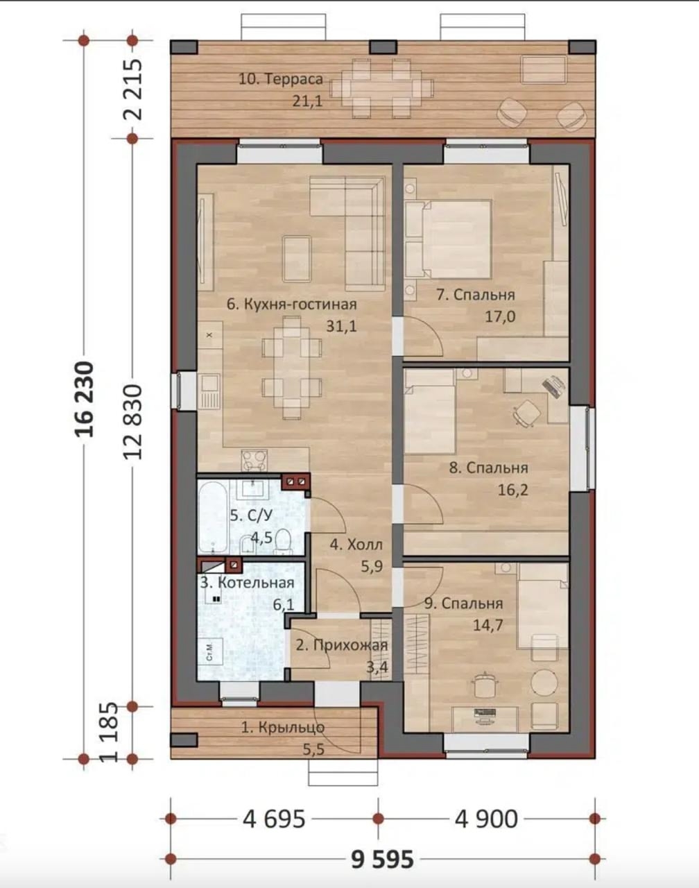 Огромная площадь: 202 м² на одном этаже — забудьте о тесноте.
